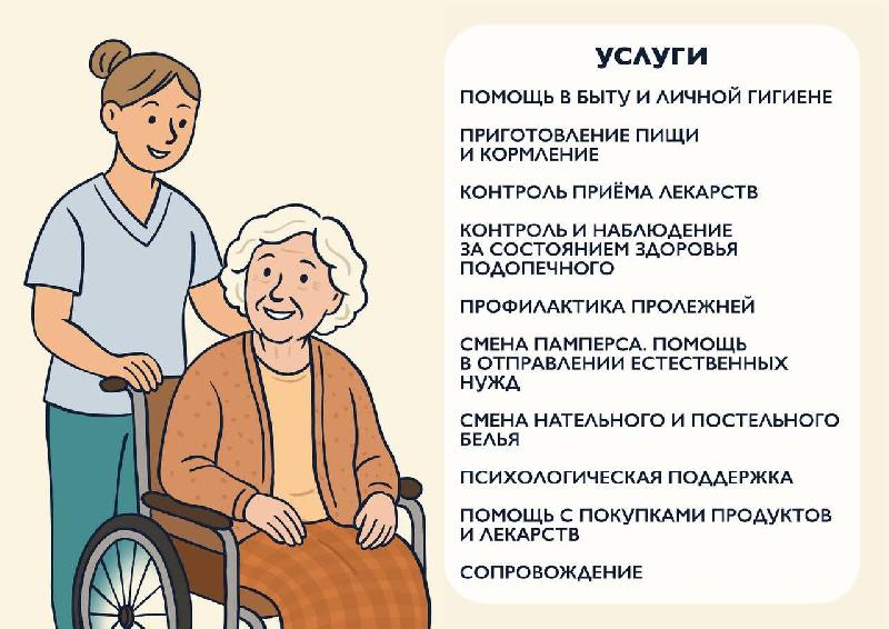 • бытовая помощь: уборка, покупка продуктов и необходимых средств;